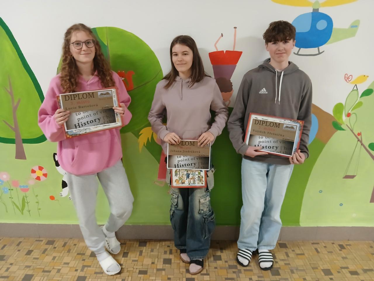 K postupu do okresního kola museli žáci získat nejméně 48 bodů z možných 80, to se podařilo 5 soutěžícím. Reprezentovat naši školu budou 3 nejlepší řešitelé Johana Jindráková (63 bodů), Vojtěch Třešnička (55 bodů) a Lucie Bartošová (53 bodů).