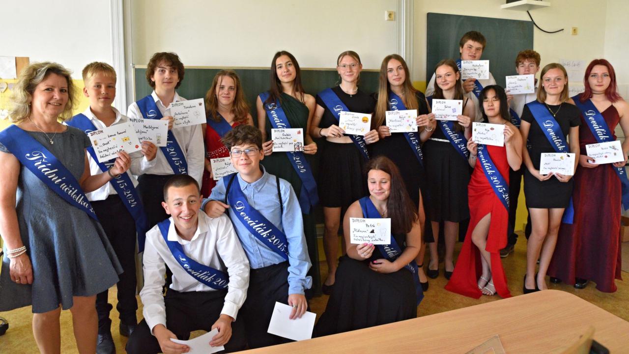 Před prázdninami děti zhodnotily uplynulý školní rok, co se naučily, v čem udělaly velký pokrok, ale také si povídaly o tom, co je čeká v příštím školním roce. Na závěr nesmělo chybět slavnostní rozdání vysvědčení. Žáci se ráno sešli v kulturním sále, kde je čekalo slavnostní ukončení školního roku. S dětmi se rozloučilo nejen vedení školy, ale také starostka města. Na jevišti byly předány knižní odměny žákům za sportovní i studijní úspěchy. Pak se již ujali slova deváťáci, aby předvedli své závěrečné vystoupení. Ve třídách už potom na žáky čekalo zhodnocení tohoto školního roku a samozřejmě předání vysvědčení. Všem dětem, učitelům, zaměstnancům školy i rodičům přejeme krásné prázdniny a načerpání nových sil do dalšího školního roku.