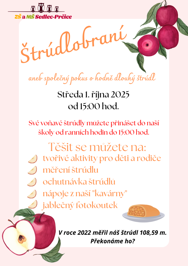 Své voňavé štrúdly můžete přinášet do naší školy od ranních hodin do 15:00 hod.