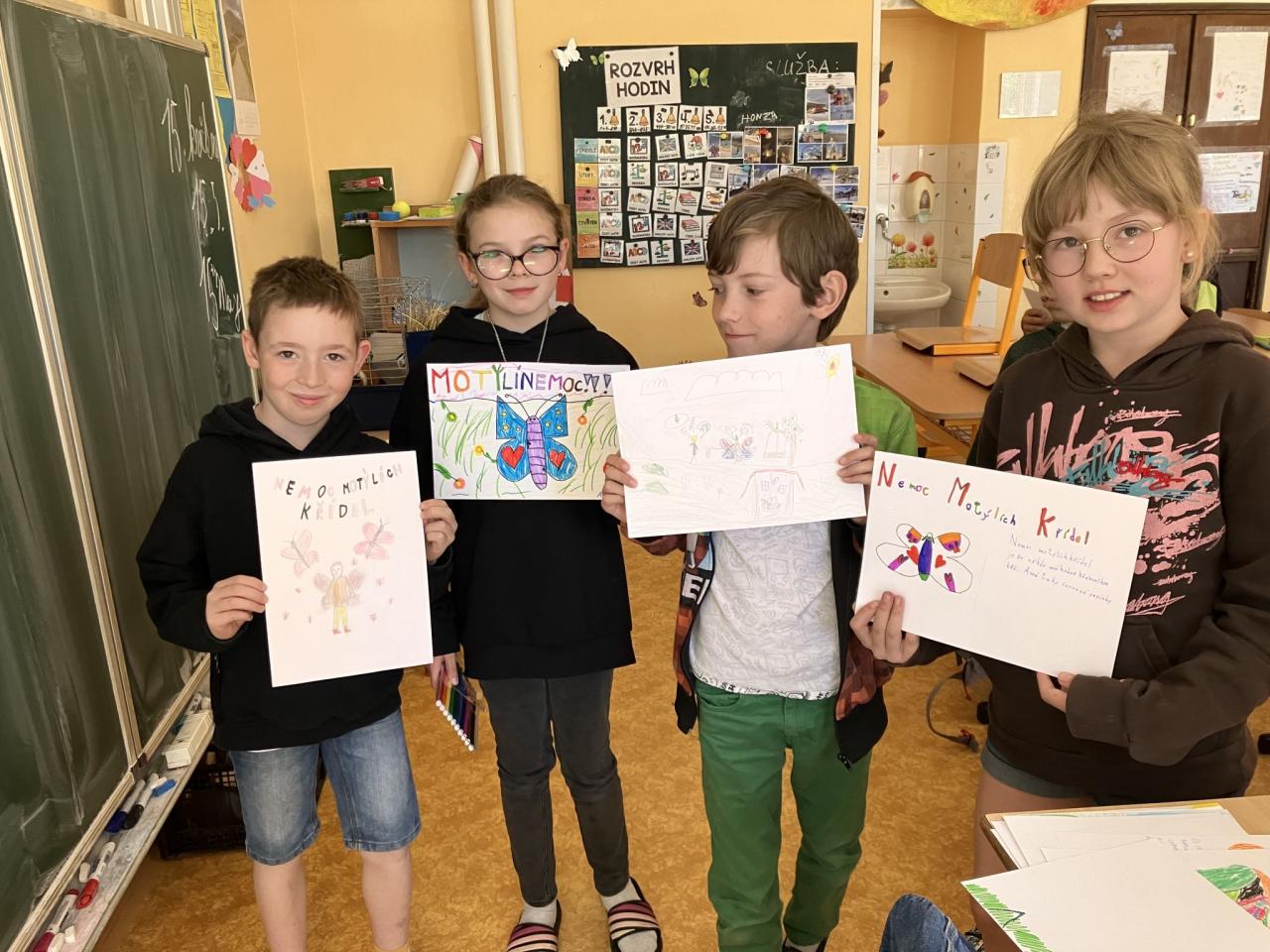 15. květen se u nás ve škole stal dnem, kdy jsme vyjádřili solidaritu a empatii k lidem postiženým vážným onemocněním epidermolysis bullosa, tak zvanou nemocí „motýlích křídel“.